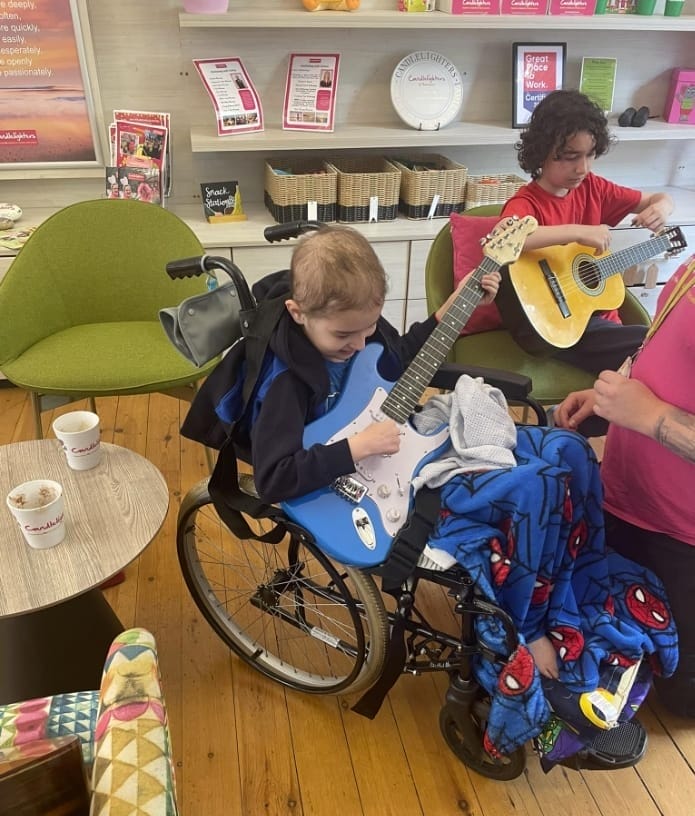 “Ben has an older brother who also really benefited from Candlelighters support. My favourite thing about Candlelighters is that it isn’t just about the child who has cancer or their parents, it is about supporting the whole family including Grandparents and siblings. Sam was able to go to sibling groups, guitar lessons and even a residential. He was so inspired by the guitar lessons, he now has his own guitar, is in a band at school and is also now learning piano. It all started with Candlelighters.”