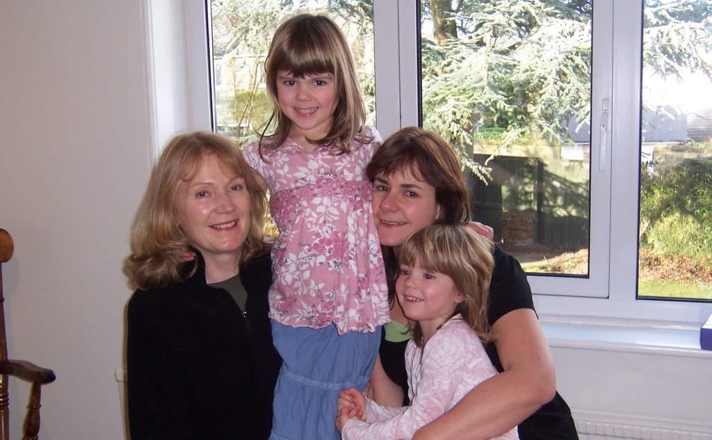 Sally (left) and Vanessa (right) with her children.